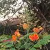 洋金凤 Sw.),豆科小凤花属灌木状或小乔木植物,枝无毛,绿或粉绿色;二回羽状复叶;总状花序伞房状,萼片无毛,花瓣橙红或黄色,圆形,花丝红色,子房无毛,花柱橙黄色;荚果窄而薄,…全部>>