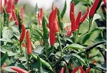五色椒又名朝天椒,五彩辣椒,为辣椒 变种,味涩。属茄科多年生半木质性植物,常作一年生栽培;江苏沭阳一带有不少花农种植,其株高30厘米—60厘米,分枝多、茎直立,单叶互生;花白色,开花期5月初—7月…全部>>