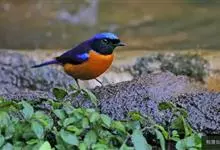 棕腹大仙鹟:体重24-28克,体长15-17厘米,是一种小型的色彩亮丽的鹟。雄鸟上体深蓝,下体棕色,脸黑,额、颈侧小块斑、翼角及腰部亮丽闪辉蓝色。与棕腹仙鹟易混淆,区别在色彩较暗。雌鸟灰褐,…全部>>
