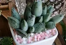 褐斑伽蓝是景天科伽蓝菜属的多年生多肉类植物,茎直立,多分枝,叶生于枝上,肉质叶片匙形,上面密被白色绒毛,下部全缘,叶缘上部有缺刻,缺刻处有深褐或棕色斑块。褐斑伽蓝原产非洲的马达加斯加岛。…全部>>