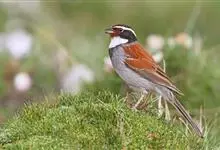 藏鹀:属小型鸣禽。喙为圆锥形,与雀科的鸟类相比较为细弱,上下喙边缘不紧密切合而微向内弯,因而切合线中略有缝隙;体羽似麻雀,此鹀以具有特殊的鲜红栗色背部,及上胸的黑带与下胸的纯灰色等形态特征,…全部>>