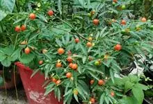 珊瑚樱是茄科茄属植物。株高达2米;植株无毛;叶窄长圆形或披针形,长1-6厘米,基部窄楔形下延,全缘或波状,侧脉4-7对;叶柄长2-5毫米;花单生,稀双生或成短总状花序与叶对生或腋外生,…全部>>