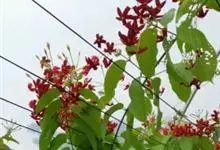 使君子 Jongkind)是使君子科、使君子属攀援灌木,叶对生,椭圆形,两面均被灰白色柔毛。穗状花序,倒挂下垂。花期夏秋。果有五棱,熟时黑色,种子白色。分布于印度、缅甸、菲律宾和中国。喜温润,深根性,…全部>>
