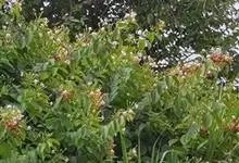 使君子 Jongkind)是使君子科、使君子属攀援灌木,叶对生,椭圆形,两面均被灰白色柔毛。穗状花序,倒挂下垂。花期夏秋。果有五棱,熟时黑色,种子白色。分布于印度、缅甸、菲律宾和中国。喜温润,深根性,…全部>>