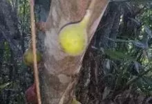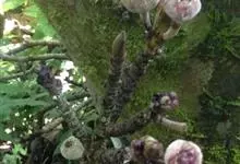 大果榕是桑科榕属的小乔木,株高可达10米;幼枝被柔毛;叶互生,宽卵状心形或近圆形;雄花无梗、匙形、花丝长,雌花生于雌株榕果内,子房白色;榕果簇生于树干基部或老茎短枝上、扁球形或陀螺形,…全部>>