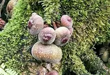 大果榕是桑科榕属的小乔木,株高可达10米;幼枝被柔毛;叶互生,宽卵状心形或近圆形;雄花无梗、匙形、花丝长,雌花生于雌株榕果内,子房白色;榕果簇生于树干基部或老茎短枝上、扁球形或陀螺形,…全部>>