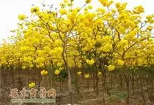 黄金风铃木Nichols),别称:黄花风铃木、黄丝风铃木、金花风铃木、伊蓓树、毛风铃、巴西风铃木。原产墨西哥、中美洲、南美洲,是巴西的国花。每年3、4月开花,花冠漏斗形、五裂,似风铃状,花缘皱曲,花…全部>>