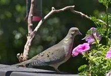 哀鸽,又名“泣鸽、哀鸠”,是鸠鸽科哀鸠属的鸟类动物。体形修长,全身羽毛为浅灰褐色,翅膀下部颜色较浅,尾羽尖,翅膀上有几块黑色的斑点,头和胸腹部为粉红色。雄性哀鸽在颈部两侧各有一小片具有金属光泽的羽毛。…全部>>