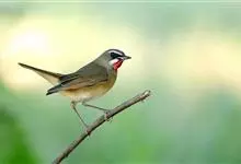 红点颏:是鸟纲、鹟科的鸣禽。又名西伯利亚歌鸲。体长14-17厘米,体重16-27克。雄鸟头部、上体主要为橄榄褐色。眉纹白色。颏部、喉部红色,周围有黑色狭纹。胸部灰色,腹部白色。雌鸟颏部、喉部不呈赤红色,…全部>>