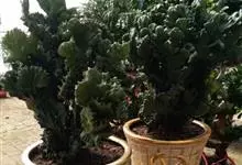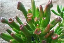 筒叶花月,是景天科青锁龙属的多年生草本植物。植株多分株,灌木状,茎较粗壮,圆柱形,表皮灰褐色;叶片肉质,互生,呈圆筒状,簇生于茎或分枝顶端,叶端呈斜截形,截面为椭圆形;花呈星状,淡白色;花期秋季。…全部>>