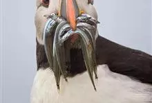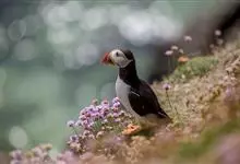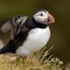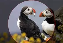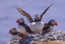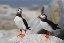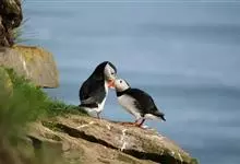 角嘴海雀,是海雀科、角嘴海雀属的中型海鸟,体长32-41厘米,嘴短而粗呈圆锥状、橙色。夏羽上嘴基部有一个三角形的突出物,形状如角。头两侧各有两条由白色丝状饰羽组成的纵带,分别位于眼上和眼下后方的头侧…全部>>