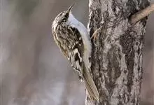 旋木雀是旋木雀科旋木雀属的一种动物。小型鸟类,体长12~15厘米,平均重10克。嘴长而下曲,上体棕褐色具白色纵纹,腰和尾上覆羽红棕色,尾黑褐色,外翈羽缘淡棕色,翅黑褐色,翅上覆羽羽端棕白色,…全部>>