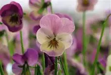 角堇:为堇菜科堇菜属多年生草本植物。株高10-30厘米 ,宽幅20-30厘米。具根状茎。茎较短而直立,分枝能力强。花两性,两侧对称,花梗腋生,花瓣5,花径 2.5-4.0厘米。花色丰富,…全部>>