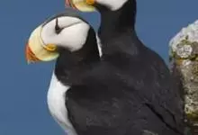 北极海鹦是海雀科的一种海鸟,体长26-38厘米,体重约490克。冠为黑色,脸颊灰色,腹部白色。喙大,为红黑色,腿为橙色,与其羽毛成为鲜明对比。冬天在海上蜕毛,失去一些鲜艳的脸部特征。成年雄性和雌性的…全部>>