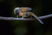 栗额斑翅鹛是噪眉科、斑翅鹛属中型鸟类,体长20-23厘米。头顶具浓密的羽冠,前额栗棕色,头顶灰褐色。上体棕褐色,两翅棕褐色具黑色横斑,翅基外缘有一黑斑,尾呈凸状,棕褐色具黑色横斑。下体棕褐色,…全部>>