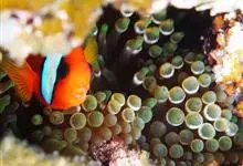 小丑鱼是鲈形目雀鲷科小丑鱼属鱼类的统称。体长仅5—6厘米。身体色彩艳丽,多为红色、橘红色;除透明的胸鳍与软背鳍鳍条外部,其余鳍均为黑色。体形怪异,体色多变,通常体侧有白色条纹。…全部>>