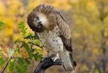 短趾雕:体长62-70厘米,体重1.2-2.3千克。它们的颔、颈和胸部上方呈浅棕色。头部浑圆像猫头鹰般,眼睛呈鲜黄色。身体沉重,上体灰褐,下体白而具深色纵纹,喉及胸单一褐色,腹部具不明显的横斑,…全部>>
