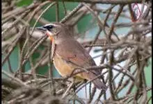 新疆歌鸲是雀形目鹟科歌鸲属鸟类,又名夜莺,夜歌鸲。成鸟全头顶和头侧淡棕褐色,眼先微微泛白,不甚明显的眼圈近白色;上体亦全为淡棕褐色;飞羽暗褐色具棕色外缘;圆形尾较长,尾羽棕褐色;下体污白色,…全部>>