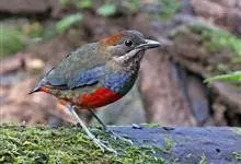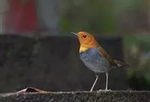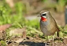 日本歌鸲:体型小似麻雀,但羽毛颜色较为美丽。嘴细长,嘴须不发达;翅短圆,上体草黄褐;雄鸟喉部橙棕色,十分明显,雌鸟却转为淡橙黄色。第一枚初级飞羽短狭;尾长约为跗蹠长度的二倍;跗蹠黑褐色,形粗长而健。…全部>>