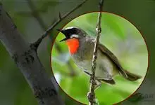 红点颏:是鸟纲、鹟科的鸣禽。又名西伯利亚歌鸲。体长14-17厘米,体重16-27克。雄鸟头部、上体主要为橄榄褐色。眉纹白色。颏部、喉部红色,周围有黑色狭纹。胸部灰色,腹部白色。雌鸟颏部、喉部不呈赤红色,…全部>>