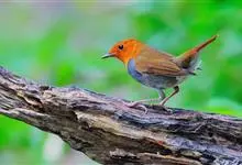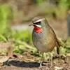 日本歌鸲:体型小似麻雀,但羽毛颜色较为美丽。嘴细长,嘴须不发达;翅短圆,上体草黄褐;雄鸟喉部橙棕色,十分明显,雌鸟却转为淡橙黄色。第一枚初级飞羽短狭;尾长约为跗蹠长度的二倍;跗蹠黑褐色,形粗长而健。…全部>>