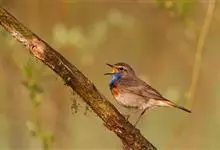 蓝点颏亦称“蓝喉歌鸲”,通称蓝靛颏儿。身体大小和麻雀相似,体长12-13厘米,体重17-18克。头部、上体主要为土褐色。眉纹白色。尾羽黑褐色,基部栗红色。颏部、喉部辉蓝色,下面有黑色横纹。下体白色。…全部>>