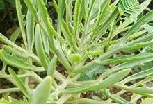 棒叶落地生根是景天科、落地生根属植物。茎直立、粉褐色。叶圆棒形,上表面有沟、粉色,有红褐斑。叶片交互对生,交叉排列成十字形。叶端锯齿上长有很小的幼株、落地后即可生根成活。原产非洲马达加斯加。…全部>>