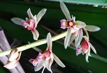 莲瓣兰是兰科、兰属植物。莲瓣兰为细长的线形,叶片质地较软,稍革质化,弓形弯垂,长35-60厘米,宽0.4-0.6厘米。叶基部有稍膨大的假鳞茎可储存水分和养分,根为圆柱状肉质根,直径0.5-1厘米,…全部>>