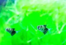 霓虹灯鱼,是脂鲤科携灯鱼属鱼类。霓虹灯鱼的体形小巧,身体狭长;体色异常鲜艳,鱼体上半部有一条明亮的银蓝绿色纵带;在鱼体下半部约由腹部附近开始至尾部为火红色;两眼具有青绿色的光彩,…全部>>