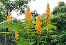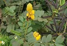 翅荚决明 Roxb.)是豆科决明属灌木植物,高3米。羽状复叶,在叶柄和叶轴上有窄翅;小叶倒卵状长圆形,先端圆钝,基部斜截形;总状花序顶生和腋生;荚果带形,…全部>>
