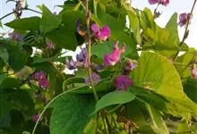 扁豆 Sweet)是豆科扁豆属多年生缠绕藤本植物,又名鹊豆、沿篱豆、藤豆等。全株几无毛,茎长可达6米。羽状复叶具3小叶;托叶基着,叶片披针形;小托叶线形,小叶宽三角状卵形,宽与长相等,…全部>>