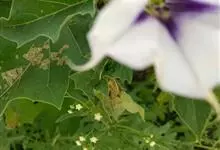 曼陀罗,茄科曼陀罗属一年生大型草本植物,全株光滑。有臭气;叶呈广卯形,边缘具不规则波状浅齿裂;花单生于枝杖间或叶腋,直立,有短梗;花萼是筒状裂片三角形,颜色为白色或淡紫色;果实为蒴果卵状,…全部>>