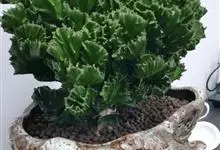 麒麟掌,是大戟科大戟属多年生植物。为金刚纂的带化变异变种。麒麟掌的株乳汁丰富;它的茎圆柱状,上部多分枝,绿色;叶互生,稀少,常生于嫩枝顶端脊上,倒卵形、倒卵状长圆形或匙形,顶端钝圆,具小凸尖,全缘,…全部>>