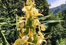 黄姜花:姜科,姜花属多年生草本草本芳香花卉,秋冬季开花,穗状花序,长圆形;苞片长椭圆形,覆瓦状排列,每一苞片内有花3-5朵;花深黄色,形似蝴蝶,气味芬芳纯正,沁人心脾;唇瓣倒心形,黄色,…全部>>