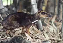 鼷鹿,别名小鼷鹿,共38个亚种。体形略比野兔大,体重1.3~2.0kg,体长420~630mm,肩高约200mm,是仅次于蹄兔目成员最小的有蹄类动物,也是鼷鹿科种体型最小的一种。面部尖长,无角,…全部>>