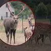 麋鹿是鹿科、麋鹿属唯一的鹿类动物。因为它头脸狭长像马、角像鹿又与其它鹿略有不同、蹄子宽大像牛、尾细长像驴,因此又名四不像。它的角形独特,形状与其它鹿的犄角正好相反,前杈再分小杈,而后杈几乎不分叉。头大,…全部>>