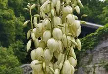 丝兰是天门冬科丝兰属植物。茎短或无茎;圆锥花序烛台状,花朵杯形,下垂,白色;叶基部呈剑形放射状,被白粉,革质;花期8—10月。丝兰原产于北美,在中国长江流域一带和华北地区均有栽培,长江以南地区也有分布。…全部>>