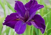 玉蝉花是鸢尾科鸢尾属的多年生草本植物,根状茎粗壮,斜伸;叶线形,中脉明显,长可达80厘米,宽约1厘米;花深紫色,直径约10厘米,花被管漏斗形,外花被裂片倒卵形,爪部细长,中央下陷呈沟状,…全部>>