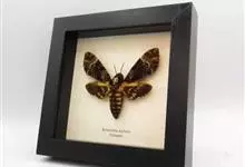 鬼脸天蛾,是鳞翅目天蛾科面形天蛾属动物。成虫翅展100~125毫米,体黑褐色;胸背有骷髅形斑纹;卵圆球形,直径约2毫米,淡黄绿色,表面光滑;老熟幼虫体长70~90毫米,蛹体长约56毫米;前翅为褐色,…全部>>