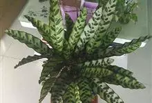花叶竹芋:竹芋科,竹芋属匍匐状分枝草本植物,植株矮小,高可达40厘米,叶片长圆形、椭圆形至卵形,基部圆或心形,边缘多少波浪形,叶面粉绿色,总状花序单生,苞片内有对花,花冠白色,裂片披针形,夏、秋开花。全部>>