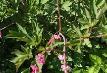荷包牡丹 Fukuhara),是罂粟科荷包牡丹属的多年生草本植物,株高30-60厘米,具肉质根状茎;茎直立呈圆柱形;叶二回三出全裂,状似牡丹叶;总状花序顶生,基部为心形,花瓣紫红色至粉红色,稀白色,…全部>>