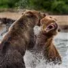 棕熊是熊科熊属哺乳动物。体形健硕,肩背隆起,身后长有一条短尾。毛色多为棕褐色或棕黄色;老年呈银灰色;幼年为棕黑色。野生条件下寿命为20—30年。棕熊分布广泛,主要分布在欧亚大陆和北美,…全部>>