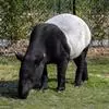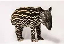 亚洲貘:亦称马来貘,是貘类中最大的一种,体长为1.8-2.5米,肩高90-120厘米,尾长5-10厘米,体重250-540千克。又叫五不像,它的鼻似象,耳似犀,尾似牛,足似虎,躯似熊,全身毛色黑白相…全部>>