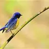 棕腹蓝仙鹟,Niltava vivida,鹟科仙鹟属的一种小型鸣禽,善在空中飞捕昆虫,中等体型18厘米,上体蓝,下体棕色,具黑色眼罩,胸橘黄渐变成臀部的皮黄色。国内分布于四川、云南、西藏和台湾等地。…全部>>