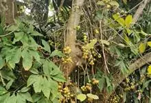 大果榕是桑科榕属的小乔木,株高可达10米;幼枝被柔毛;叶互生,宽卵状心形或近圆形;雄花无梗、匙形、花丝长,雌花生于雌株榕果内,子房白色;榕果簇生于树干基部或老茎短枝上、扁球形或陀螺形,…全部>>