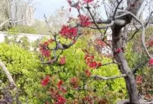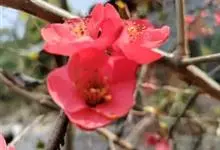 贴梗海棠Nakai)是蔷薇科、木瓜海棠属植物。落叶灌木,高达2米,枝条直立开展,有刺。叶片卵形至椭圆形,稀长椭圆形,长3-9厘米,宽1.5-5厘米。花先叶开放,3-5朵簇生于二年生老枝上。…全部>>