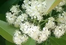 石楠 Kalkman),是蔷薇科石楠属的常绿乔木,高5~12米,株型紧凑,树冠圆球形。树枝为褐灰色;鳞片为褐色,没有毛;叶片革质,长椭圆至侧卵状椭圆形,有锯齿,新叶红色光亮。复伞房花序,白色小花,…全部>>