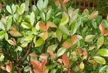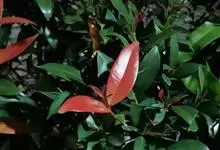 红叶石楠 是蔷薇科,石楠属杂交种,为常绿小乔木或灌木,乔木高可达5米、灌木高可达2米。叶片革质,长圆形至倒卵状、披针形,叶端渐尖,叶基楔形,叶缘有带腺的锯齿,花多而密,复伞房花序,花白色,梨果黄红色,…全部>>