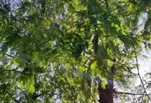 落羽杉 Rich.),杉科落羽杉属木本植物。树干尖削度大,基部通常膨大,具膝状呼吸根,树皮棕色,裂成长条片;一年生小枝褐色,侧生短枝;叶线形;球果具短柄,熟时淡褐黄色,被白粉;花期3月;球果10月成熟。…全部>>