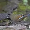 黄喉噪鹛体型略小,顶冠蓝灰色,特征为具黑色的眼罩和鲜黄色的喉。上体褐色,尾端黑色而具白色边缘,腹部及尾下覆羽皮黄色而渐变成白色。黄喉噪鹛隐匿于亚热带常绿林和浓密灌丛,于地面杂物中取食,喜食昆虫,…全部>>